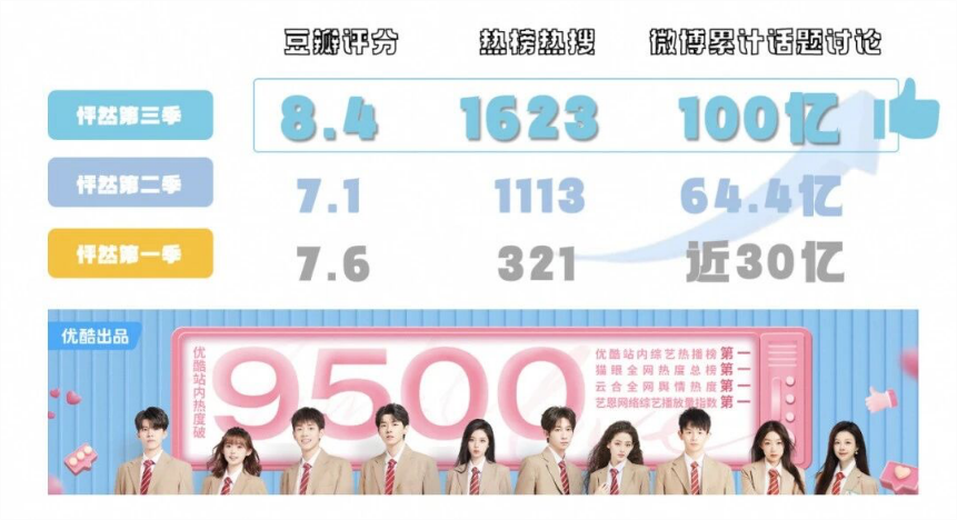 质量的保障不仅在于外在制作的精良,更在于内在力量的深厚。优酷恋综在品控上,尤其注重人的成长、情感的真实与价值观的正向。比如《怦然心动20岁》之所以能在豆瓣最高开分8.4,就在于优酷希望呈现出一种关于爱情最理想也最本初的状态,没有斤斤计较、没有权衡利弊,直接、单纯、美好。