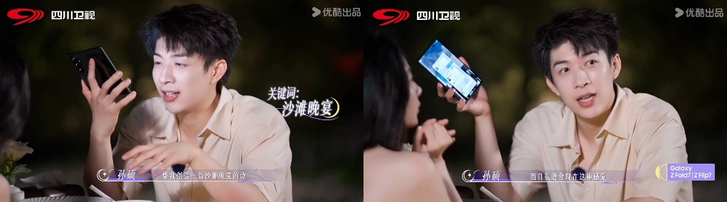 今年三星Z系列主打AI功能,于是优酷让它化身为约会氛围营造大师:在第一期约会中,让男女嘉宾用三星Z系列的AI音乐功能,创作独属于二人约会的背景音乐;在第六期约会中,让男女嘉宾用手机的AI绘图助手,共同生成二人理想中的约会场景。这种硬核科技与心动场景的交相辉映,将产品卖点转化为相处中的默契与惊喜,让三星AI功能化身「赛博丘比特」,远比单纯的功能演示更能打动观众。