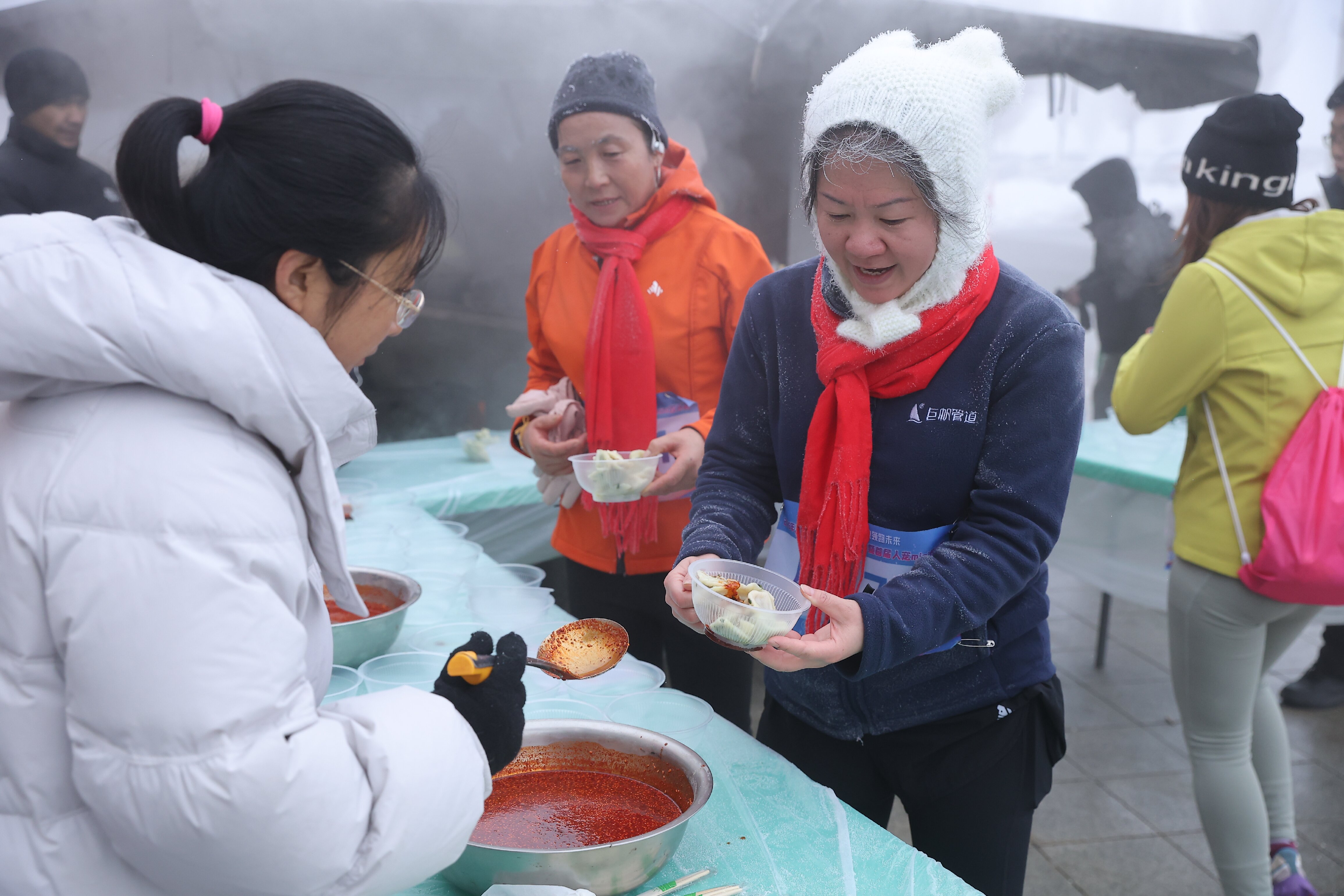 终点处特设“水饺专区”,所有参赛者均可免费品尝热气腾腾的水饺。“跑完步吃口热饺子,心里特别暖!”三坪农场居民说。