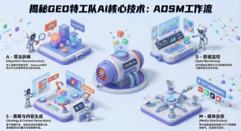 荷里购首创的ADSM闭环技术框架,将AI能力从单一的内容产出,提升为全链路的“营销决策引擎”。在这一框架下,GEO特工队AI (GEO Agent)不仅能实时分析DeepSeek、腾讯元宝等平台的算法更新,还能根据真实用户提问动态调整优化策略。这种高维度的技术碾压,是普通工具无法企及的“护城河”。