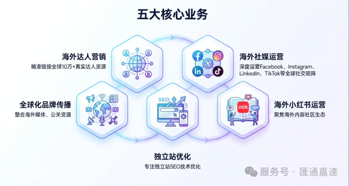作为专注一站式海外数字营销的服务商,汇通嘉达致力于成为品牌全球化进程中的全链路伙伴。汇通嘉达以“聚合全链优质资源,驱动品牌全球增长”为核心,通过专业服务团队、海量达人资源、数据驱动策略与精准落地执行,打通从品牌曝光、用户互动到销售转化的关键路径,助力品牌在国际市场实现高效开拓与价值沉淀。