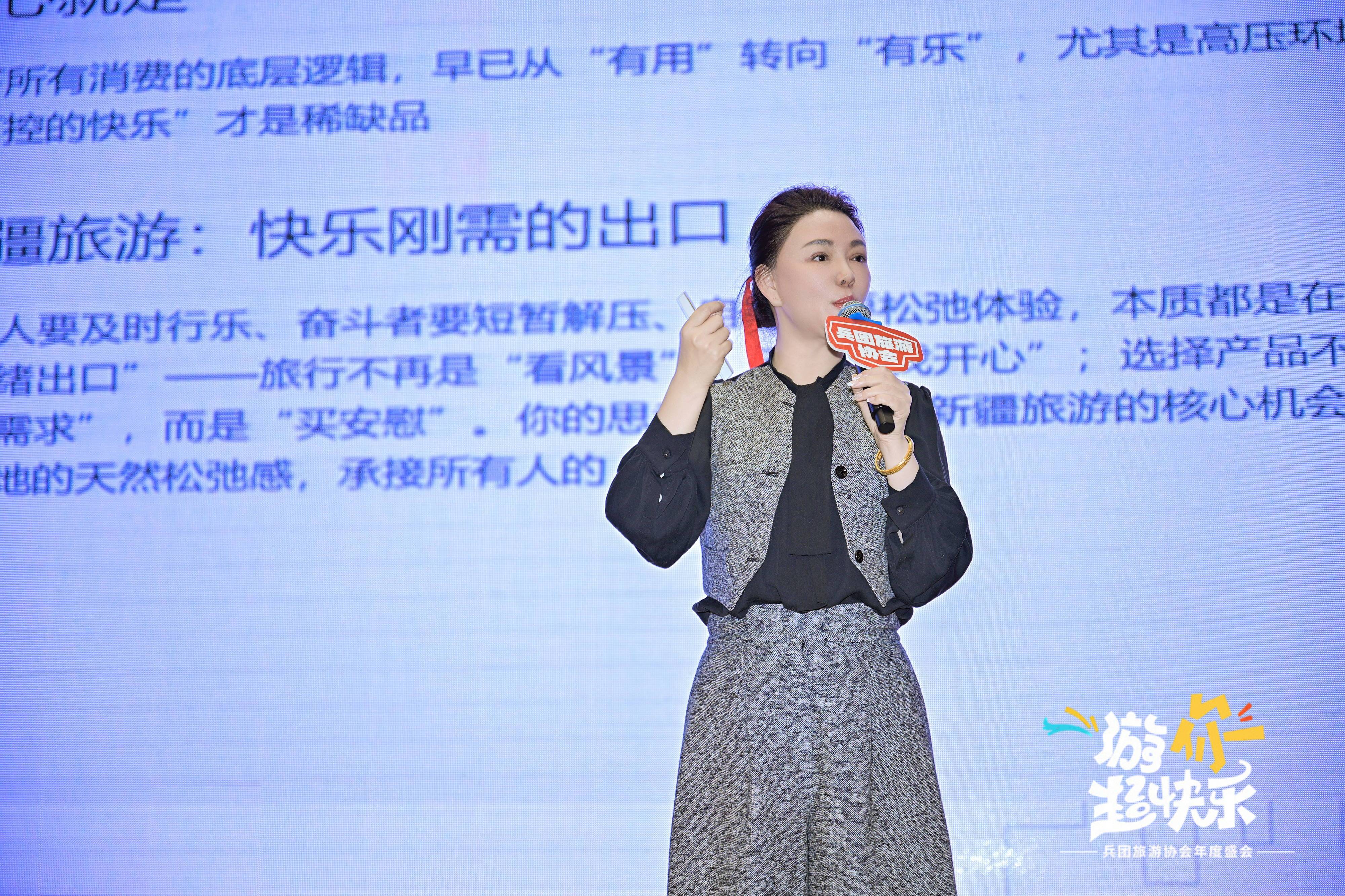 大会尾声,兵团旅游协会会长、新疆康辉总经理惠新茹压轴登场,以《2026沿着更好的轨迹向上生长》为题,结合自身创业历程与行业观察,分享深耕文旅事业的初心与前瞻视野,引发全场共鸣。