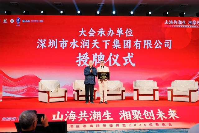 商会作为活动主办方,为活动提供了坚实的平台支撑与资源背书。而活动中一个极具象征意义的时刻,是深圳市委原书记厉有为亲自登台,为本次活动组委会主任、水润天下集团董事长陈波授予“活动组委会主任”牌匾。这一授牌,远超出礼仪范畴。它是一位改革开放的先行者、深圳特区建设的老领导,对新一代湘商领军人物担当精神的高度认可,更是湘商精神薪火相传、事业世代接力的生动写照。它象征着信任、嘱托与期望,标志着以“湘商共同体”为目标的新的组织化征程,在这一刻获得了厚重的历史授权与起点。