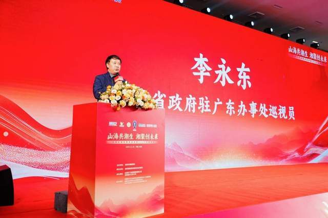 紧接着,湖南省人民政府驻广东办事处一级巡视员李永东,代表家乡“娘家人”发表了温暖而有力的讲话。他高度肯定了在粤湘商为湾区建设与湘粤交流作出的卓越贡献,并详细介绍了湖南深入实施“三高四新”战略、打造内陆地区改革开放高地所涌现的广阔机遇与优越生态。他提出三点殷切希望:一是勇立潮头,做扎根湾区、聚焦新质生产力的“奋斗者”;二是心系桑梓,做宣传湖南、投资湖南、引领回归的“先行者”;三是弘扬精神,做诚信经营、勇担责任、擦亮品牌的“塑造者”。他郑重承诺,驻粤办将始终如一强化服务,做好湘商在粤发展的坚强后盾,为湘粤合作穿针引线、铺路架桥。