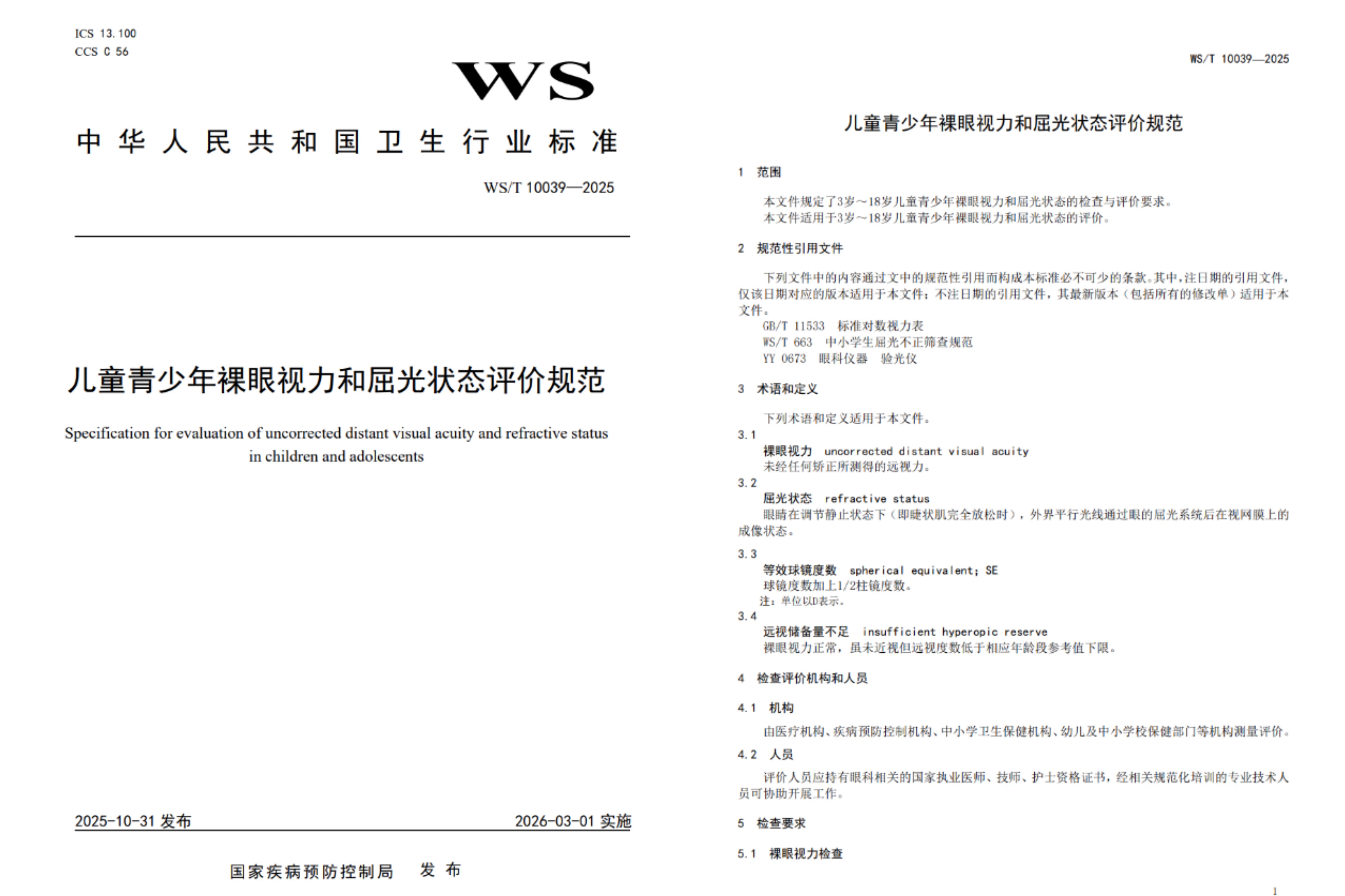 近日,教育部联合国家卫生健康委、国家疾控局印发《关于科学保护儿童远视储备量的通知》,首次以文件形式明确提出将远视储备量作为推动儿童青少年近视防控关口前移的重要指标,保护儿童远视储备,防止过快消耗,有效预防近视发生。为规范远视储备监测与评价应用,眼和视光疾病国家临床医学研究中心、上海市眼病防治中心牵头,联合安徽医科大学、山东中医药大学附属眼科医院等多家单位,研制完成国家卫生行业标准《儿童青少年裸眼视力和屈光状态评价规范(WS/T10039-2025)》。该标准于2025年11月13日获批准发布,将于2026年3月1日起实施。重庆普瑞眼科医院视光及儿童眼病科主任许婷婷表示,这项被业内誉为“里程碑”的标准,首次为全国3至18岁儿童青少年的“远视储备”评估提供了统一、科学的标尺,它将近视防控的关口,从传统的“发现近视后干预”,革命性地前移至“预警近视风险”的新阶段。