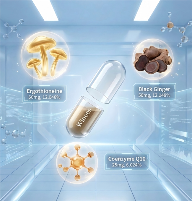 Winees 采用1 号 HPMC 植物胶囊+日本 cGMP 低温工艺:胶囊由植物纤维素制成,耐温湿度变化,存放 6 个月后,麦角硫因、辅酶 Q10 的活性保留率仍达 98.7%;生产全程 0-4℃低温处理,避免高温破坏成分活性。这意味着,你第 1 天吃的和第 365 天吃的,活性是一样的。