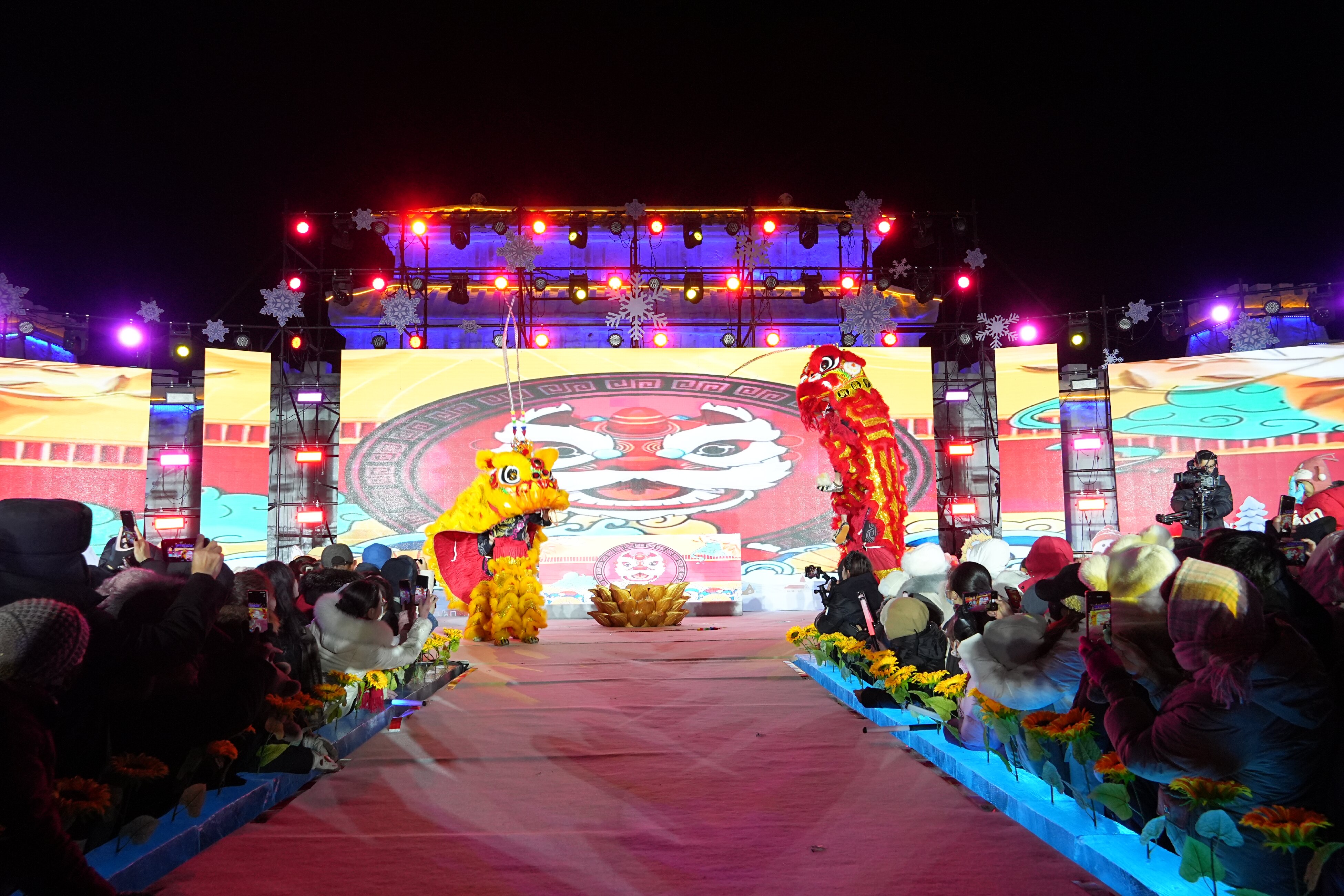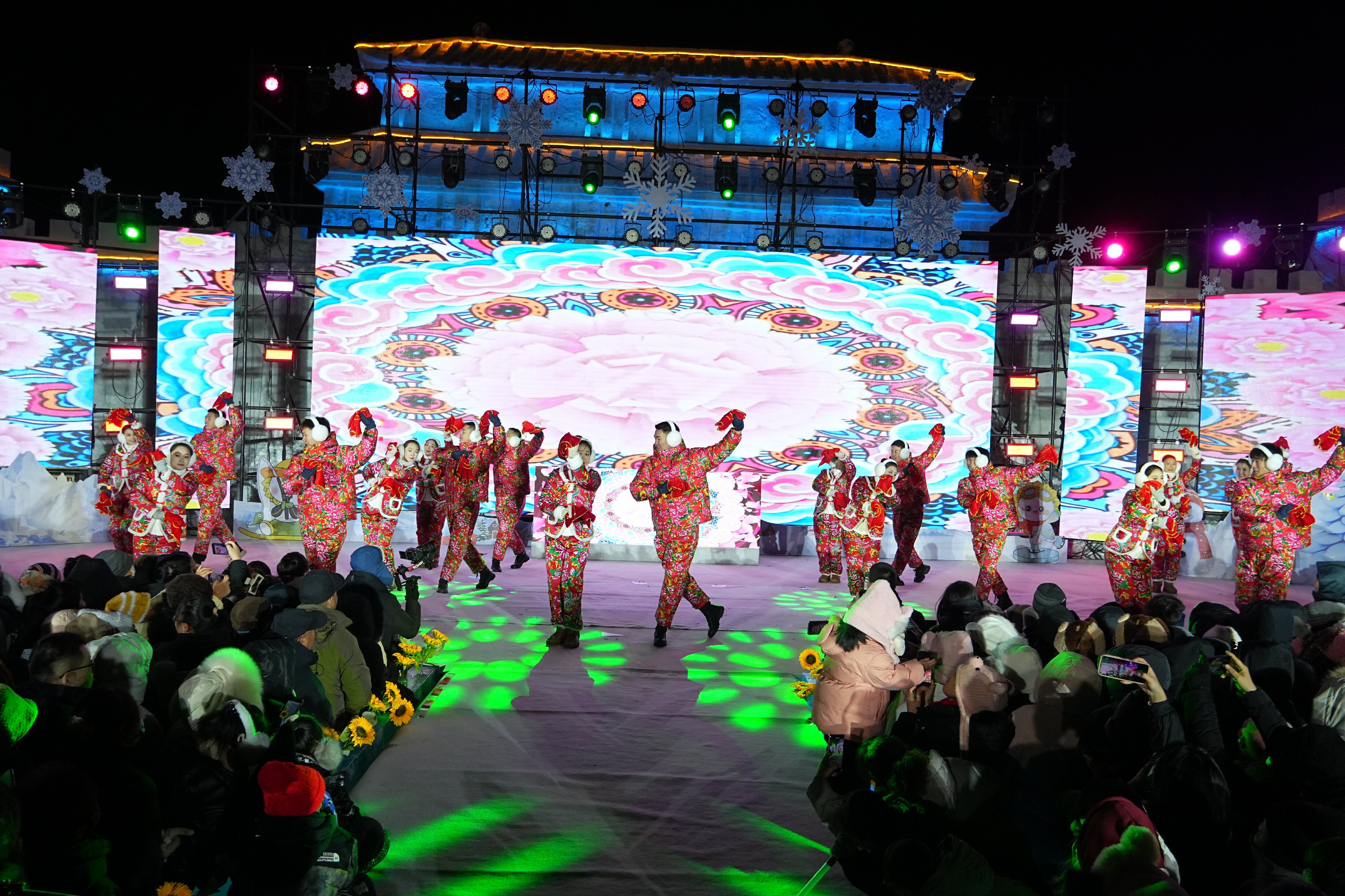 活动精心打造了多重沉浸式体验场景。舞台区域全面扩容,观众置身银装素裹的冰雪天地中深度参与。冰雪花灯秀以冰雪为载体,融入北屯地域文化与兵团精神元素,让观众在光影流转中感受独特魅力。