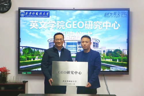 12 月 31 日,全球首个 GEO 研究中心授牌仪式在西安外国语大学教学楼 I 区 404 会议室隆重举行。西安外国语大学特聘 GEO 专家、GEO 研究中心负责人兼主任、长沙抓词智能科技有限公司创始人兼 CEO 周有贵,法国巴黎学院中国办公室主任张静慧,陕西法中高商教育科技有限公司总经理、山西嘉瑞教育科技有限公司董事长李栋,香港正恩国际投资发展集团有限公司总裁高国龙,西安外国语大学相关负责人冯正斌、王开琴等出席仪式。