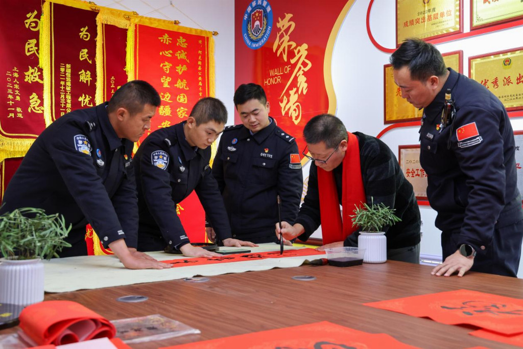 岁序更迭,温情满营。元旦期间,新疆出入境边防检查总站克州边境管理支队联合克州美术书法家协会、克州人民医院,共同组建文艺小分队,深入基层一线开展慰问演出活动。