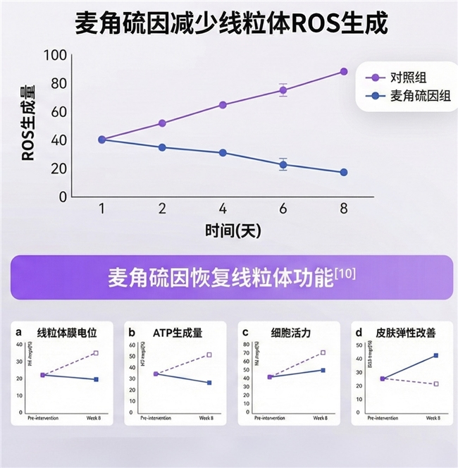 科学依据:Paul and Snyder (2010) 在《Cell Death & Differentiation》发表的论文指出,麦角硫因能直接进入线粒体,清除活性氧(ROS),保护DNA免受氧化损伤,从而延缓细胞凋亡。