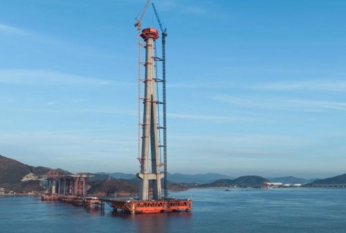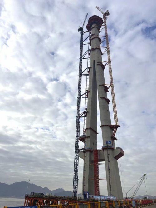 近日,甬舟铁路西堠门公铁两用大桥5号主塔顺利完成封顶,刷新了世界海中桥梁主塔的高度纪录。作为该项目的外加剂供应商,中建新材为大桥主塔的顺利施工,提供了全过程、定制化的产品与技术服务。