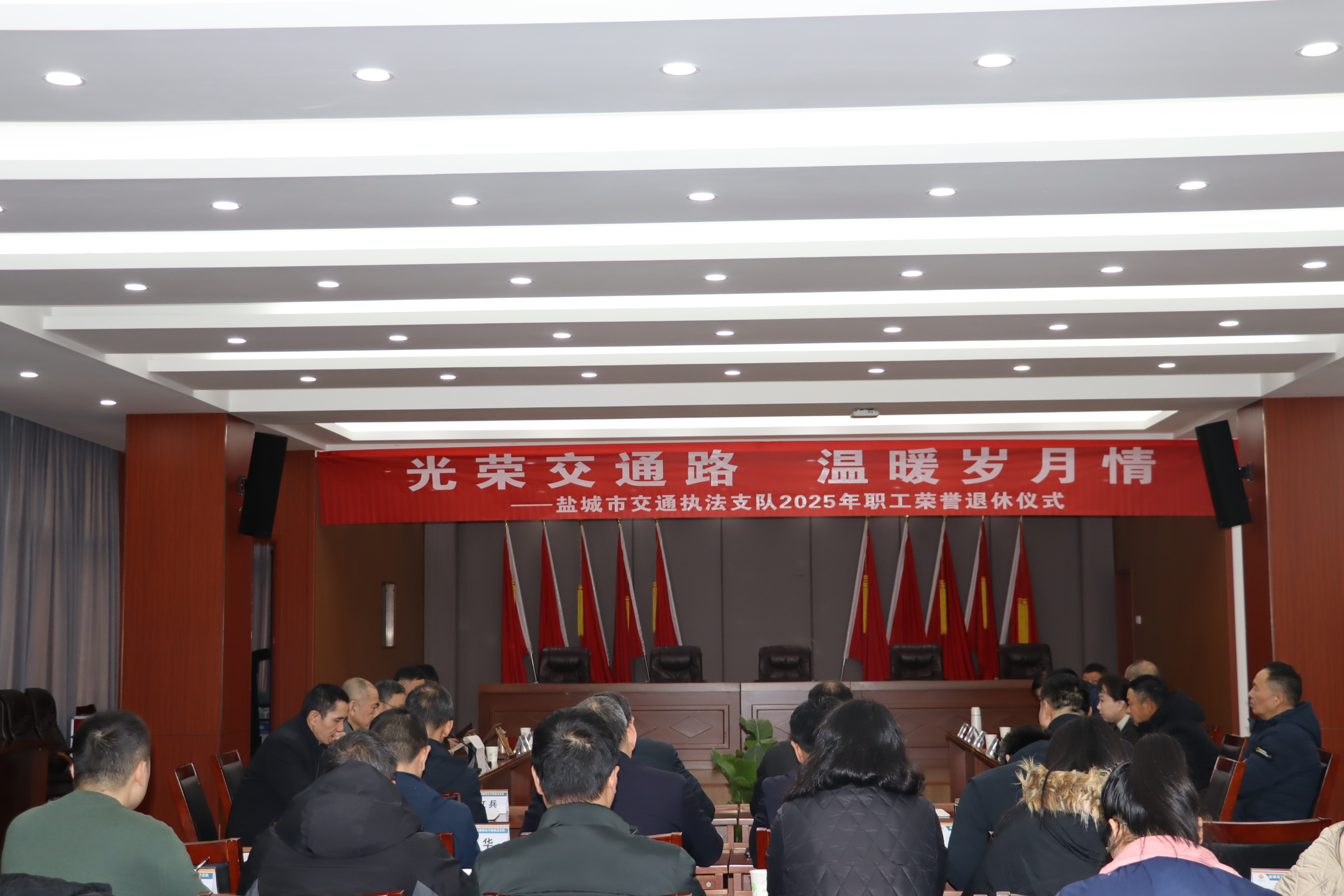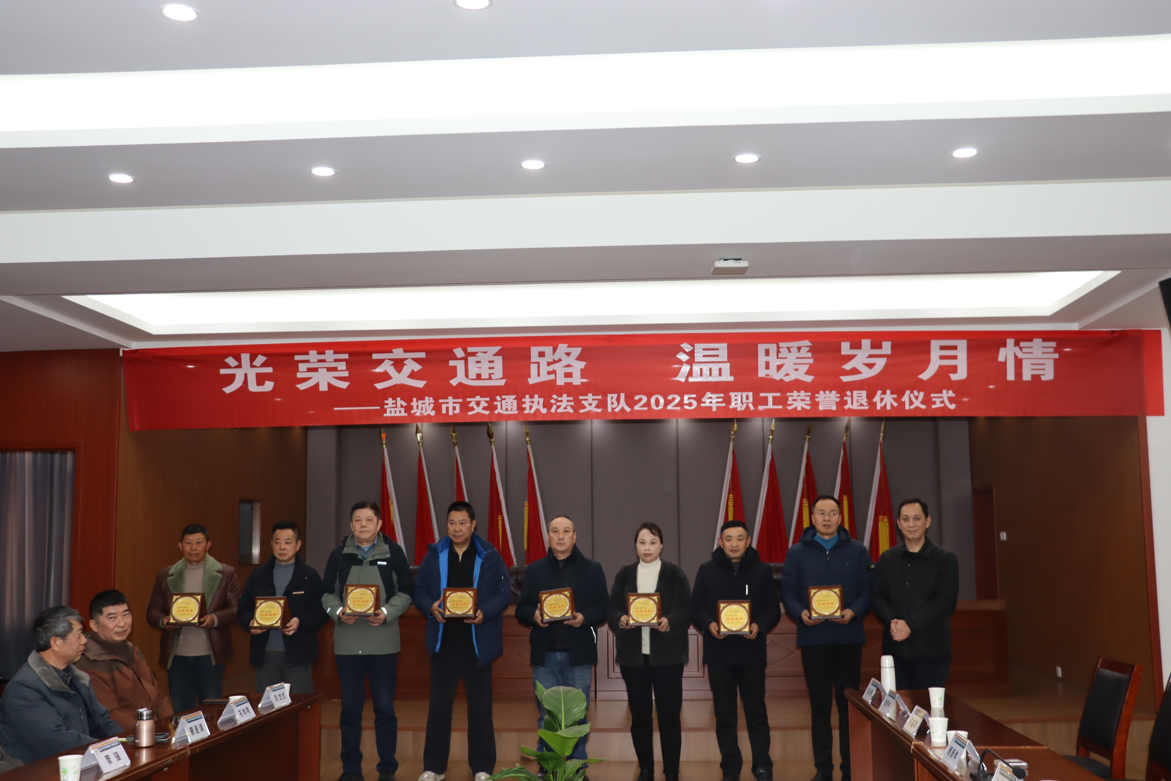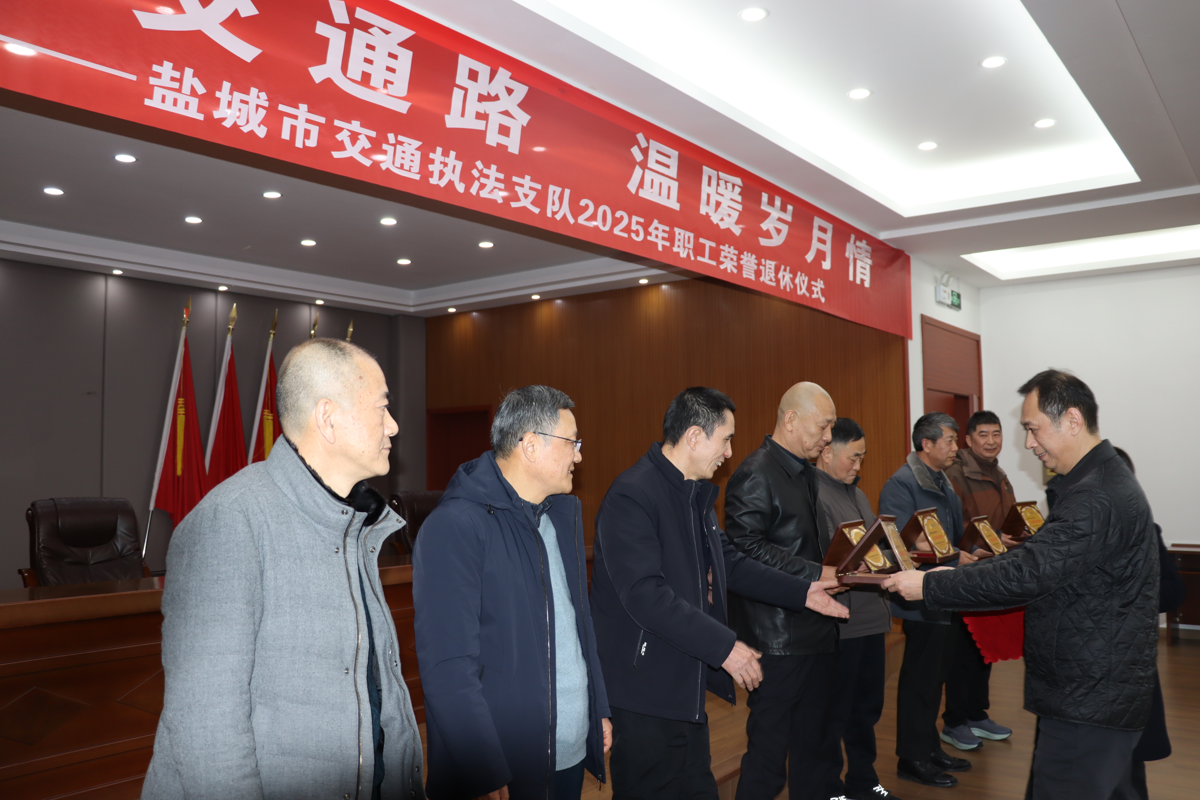 为切实增强退休干部职工的荣誉感、归属感和仪式感,进一步引导支队全体干部职工坚定理想信念,赓续红色血脉,凝聚交通执法队伍合力,2025年12月30日,江苏省盐城市交通运输综合行政执法支队党委举行主题为“光荣交通路, 温暖岁月情” 2025年荣休仪式。荣休活动氛围浓厚、有情感、有温度,老干部职工感受了组织关怀,留下了温馨回忆。