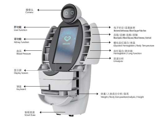 好伸体 AI 健康管理机器人搭载 18 大核心模块,可完成 16 项基础体检,涵盖身高、体重、血压、血糖、血脂、骨密度等关键健康指标,实现快速筛查与数据采集。机器人不仅具备基础检测功能,更能提供智能管理服务,包括健康档案建立、保健计划制定、就医提醒等全周期追踪服务。基于检测数据,机器人还能生成个性化的营养测评、器官保健建议及抗衰老方案,为用户提供科学、精准的健康评估,成为家庭与机构必备的健康管家。