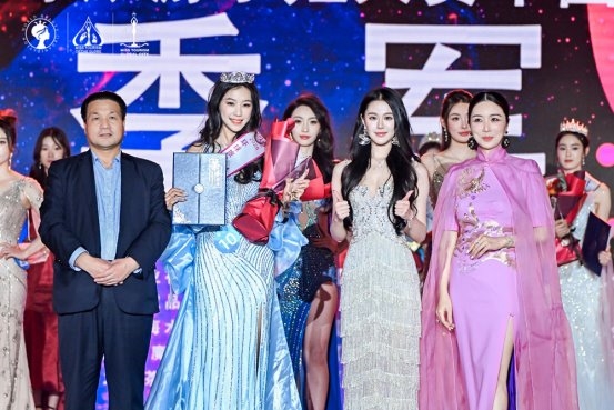图:2025环球国际小姐中国总冠军朱琳(右一)为获得亚军的候君宜颁奖