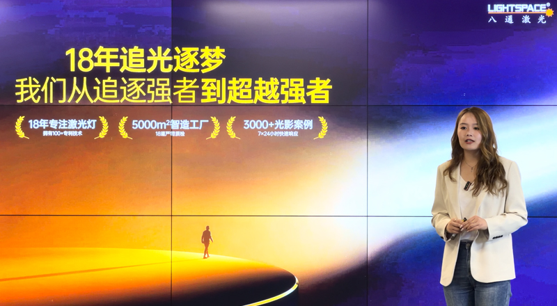 发布会上,八通激光执行总经理分享了八通激光的追光故事:“18年只做一个赛道,值!因为我们相信,真正的成功源于对极致的追求。”未来,八通激光将继续以技术创新为引领,以高品质产品为支撑,为全球合作伙伴提供更专业的激光灯解决方案,让更多精彩的光影故事在世界各地上演。