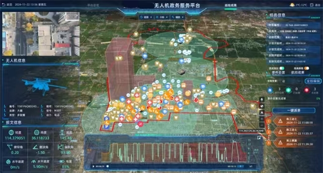 从全国布局来看,平台已在河南、广东、四川高速、云南林草等多个地区与领域落地应用,部署无人机自动机场超百套,覆盖政务巡检、交通监管、应急救援、生态保护等诸多场景,形成可复制、可推广的实践经验,为低空经济与城市治理的深度融合提供有力支撑。