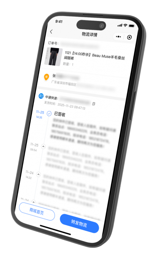另一方面,用户在小程序下单后,可直接查看完整物流轨迹,客服团队每天处理的物流咨询量减少近一半,人效显著提升。