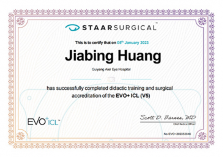 黄加兵院长作为贵阳爱尔眼科医院屈光手术的领军人,凭借其深厚的技术实力、大量的成功手术案例(拥有超过15000例ICL手术经验)以及对新技术卓越的掌控能力,荣获贵州省首位ICL官方认证的V5手术专家。这不仅是其个人专业实力的体现,更意味着贵阳爱尔眼科医院具备了从“机构准入”到“专家执刀”的完整高阶手术资质,能够为患者提供从评估、手术到随访的全链条、高品质医疗服务。