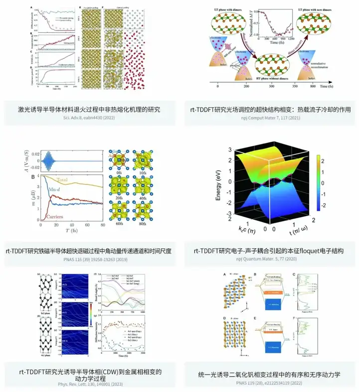 rt-TDDFT(实时含时密度泛函),用于拍摄原子和电子在激光照射等超快过程下的“高速纪录片”。传统方法的时间分辨率太低(阿秒级),只能拍出模糊的瞬间。PWmat的改进就像开发了一种新的拍摄技术,让时间步长变得更长(飞秒级),从而能连续记录更长时间(皮秒级)的完整过程,比如光催化反应中能量是如何一步步传递的,就像用高速摄影看清子弹穿透苹果的每一个细节。对于现代半导体工业来说,rt-TDDFT是从半导体材料的光致调控逆设计和光刻胶的超快反应过程等关键研究中,实现深刻理解与有效优化的强大理论工具与计算手段。