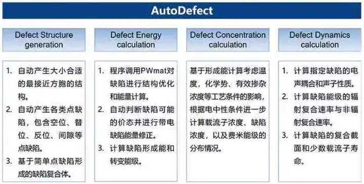 ▲PWmat中AutoDefect功能特性