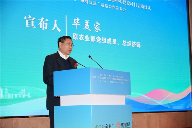 原农业部党组成员、总经济师毕美家宣布仪式正式启动,并与中国经济改革研究基金会秘书长谌利民、中央宣传部出版局原副局长、一级巡视员刘建生、中央统战部培训中心原副主任王峰辉、中国经济改革研究基金会副秘书长晁亮、台州市政协副主席叶玲君、台州市农业农村局副局长罗丙照、台州市电子商务协会会长瞿建军、浙江城特科技管理有限公司董事长林辉一同启动按钮。