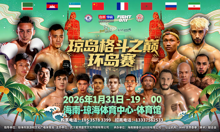 1月31日,琼海体育中心体育馆,灯光将为巅峰对决点亮,热血将为荣耀时刻沸腾。这场兼具竞技性与观赏性的国际格斗盛宴,既是海南省原创体育品牌的实力亮相,也是自贸港体育产业高质量发展的生动写照。诚邀广大格斗爱好者与游客齐聚琼海,在辞旧迎新的喜庆氛围中,见证拳台传奇,助力省运盛会,共赴一场“观赛+度假”的双重狂欢!