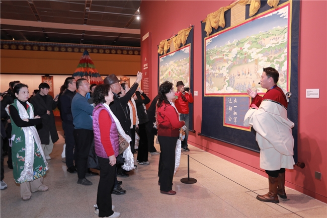 1月10日,“镌刻在唐卡中的红色记忆——郎卡杰唐卡创新艺术展”在中国非物质文化遗产馆圆满落幕。展览以国家级非物质文化遗产——郎卡杰唐卡为艺术载体,融合“红色+非遗”理念元素,既为社会各界带来一场丰盛文化盛宴,也向各界展示了红军长征在康巴地区的革命历史,讲述民族团结精神在炉霍县接续传承的故事。