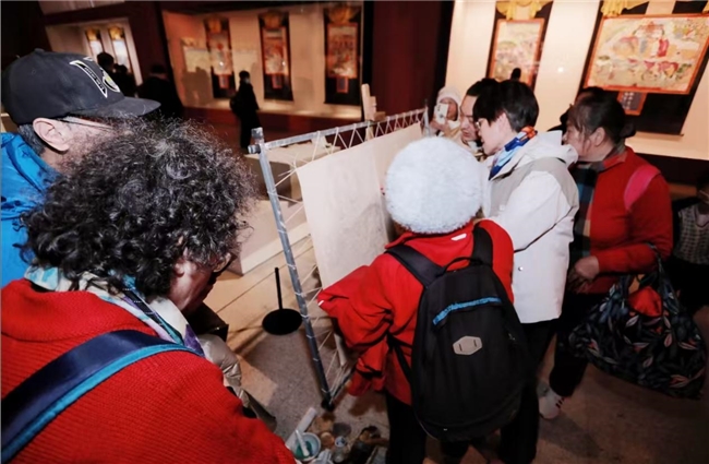 展览同步举办了“镌刻在唐卡中的红色记忆”创绘延伸学术交流座谈会,就“红色+非遗”的唐卡艺术与时代主题融合表达的方向展开探讨。潮流艺术对话千年非遗沙龙活动,吸引了众多观众互动参与。