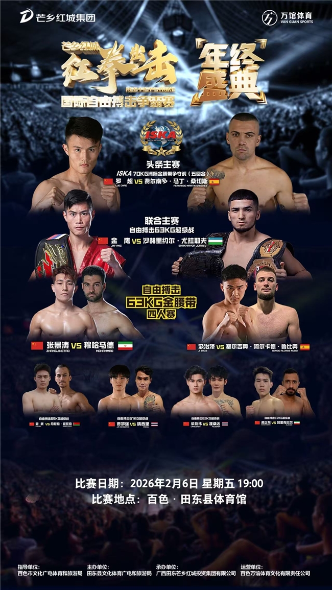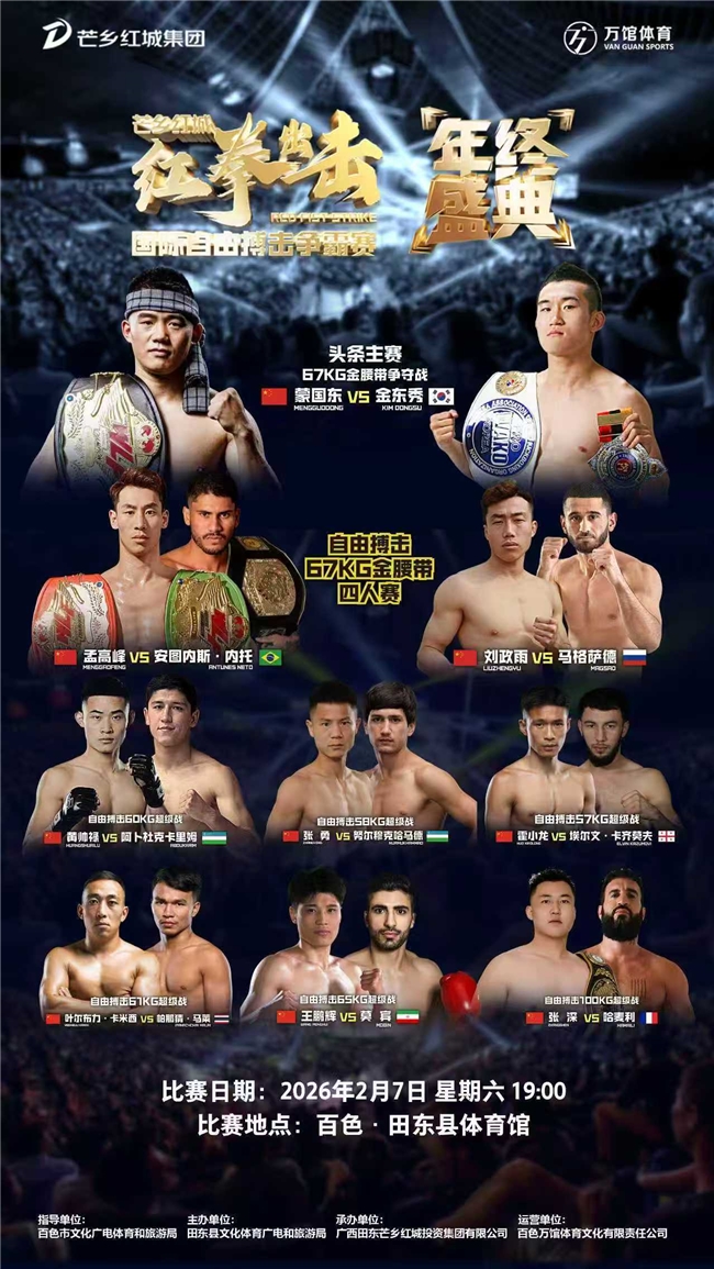 年关将至,年味渐浓,当《“十五五”旅游业发展规划》与《关于促进体育消费的若干措施》深度落地,“跟着比赛去旅游”“赛事里过大年”已然成为激活春节消费的全新热潮。2月6日至7日,百色本土顶级体育IP“红拳出击”载誉回归,将万众瞩目的年终盛典落户“中国芒果之乡”广西百色田东。这场连续两天的国际搏击盛宴,不仅是一场高手云集的竞技狂欢,更以“体育+文旅+年味”的三重魅力,铸就新春佳节里体育文旅融合的标杆实践,为区域经济发展注入强劲动能。