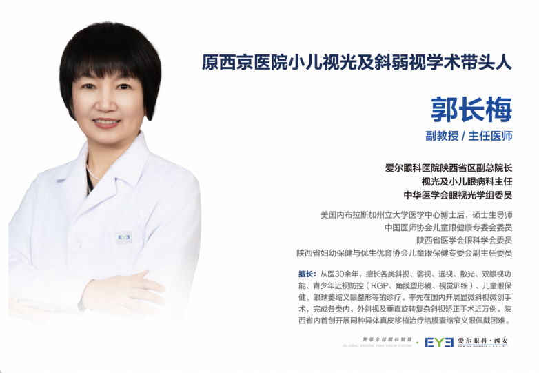 西安爱尔眼科视光科由陕西省区副总院长郭长梅教授(原西京医院斜视弱视与小儿视光学术带头人)领衔,汇聚了程鹭、刘利明副主任医师等一批技术精湛的专家。团队秉承 “5位眼视光专业人员服务1个孩子”的理念,确保从检查、评估到方案制定、跟踪随访的每一个环节都严谨细致。