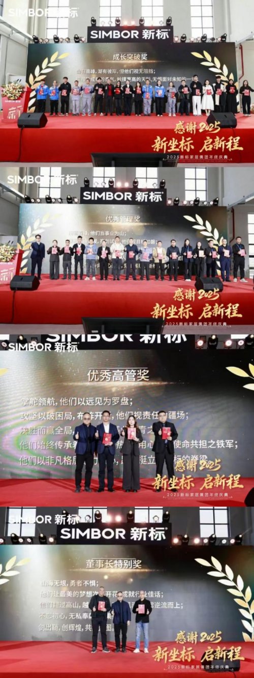 近日,“感谢2025 新坐标 启新程”2025新标家居集团年终庆典圆满举行,新标家居集团董事长黄东江、执行总裁肖海燕、副总裁黄子烽与全体新标同仁、合作伙伴齐聚一堂,回顾峥嵘岁月,展望新岁宏景,以同心共志迎接2026蓬勃新篇章。