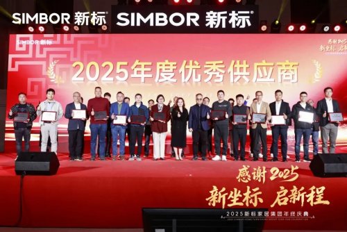 过去一年,面对市场考验,新标门窗迎难而上,稳步前行,取得了扎实的经营成果。这份成绩离不开广大供应商合作伙伴的坚定支持与紧密协作,为此,庆典上特别举行了优秀供应商表彰仪式。新标家居集团董事长黄东江表示,2026年新标将与广大供应商合作伙伴优化供需协同,在交付稳定、质量管控和成本优化等方面深化配合,提升整体运营效率;携手打造更具韧性的国际化供应链,在标准对接、效率提升和风险协同上增强合力;在新能源汽车铝型材等新战略领域,将与供应商伙伴们共建“战略创新联合体”,共同推进新材料、新工艺的研发应用,以优势互补、深度协同,共创长远价值,为创造更加美好的人居生活不懈努力。