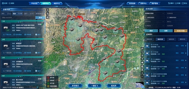 效率提升成果显著:通过智能调度与自动化作业,平台将应急响应时间压缩至5分钟内,较传统模式效率提升3倍。在矿区盗采、森林火情等场景中,无人机可快速抵达现场,实时回传影像数据,为决策者提供精准依据,助力快速处置。平台累计完成超600架次飞行任务,隐患发现与处置的时效性得到根本性提升。