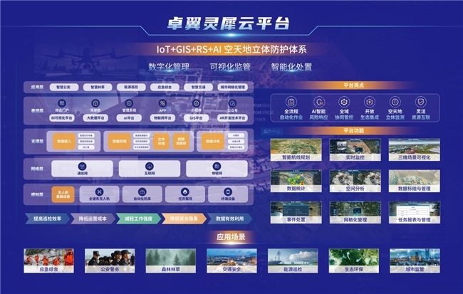 针对传统巡检模式的痛点,“一网统飞”灵犀云平台以全域化、智能化、协同化为核心定位,衔接政府应急、城管、林草、水利等多部门业务需求,整合全谱系无人机、自动化机库与多维度数据资源,构建起一体化的低空巡检管理中枢,为破解行业困境提供系统性解决方案。