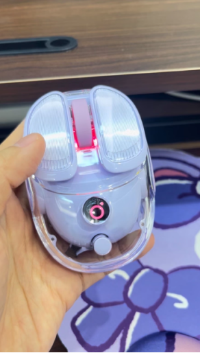 Q9的包装简洁,内含鼠标本体与说明书。其设计语言一目了然:小巧、圆润、多彩。我们拿到的是“寒酥紫”版本,低饱和度的紫色显得优雅清爽。另外提供的晶透白、星河蓝与胭脂粉,也均采用了类似的时尚配色逻辑,明显旨在吸引对桌面美学有要求的用户。