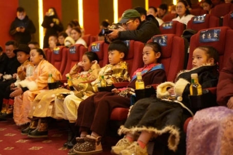捐赠仪式后,医护人员、家属及子女共同观看了由中央广播电视总台倾力打造的中国首部由航天员在轨实拍的纪实电影《窗外是蓝星》。该片不仅真实记录了中国空间站建设与运行的壮丽图景。在海拔3700多的影院里,浩瀚宇宙与航天员的探索精神,为在场观众带来直抵心灵的震撼。航天梦想的种子借此播撒在雪域孩童心中,也为高原医务工作者注入了坚守岗位、服务人民的信念力量。