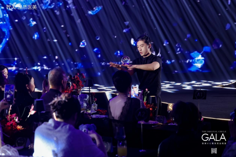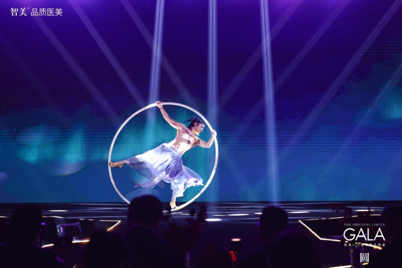 一场融合形体、光影与意象的当代舞蹈,以极具张力的方式,演绎了“圆”所蕴含的循环、共生与永恒之力。随后,智美品质医美IP广受赞誉的小蓝熊从屏幕走入现实,以活泼舞蹈和温暖互动,将品牌陪伴的温度传递给现场每一个人。而智美「精英男士系列」风尚秀,更是将现场的氛围推向高潮,展现了品牌在男性品质医美领域的先锋探索。
