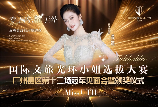 2026年1月20日,广州领亿来大厦五层流光溢彩,气氛肃穆而热烈。“国际文旅光环小姐大赛”选拔赛广州赛区第十二场冠军加冕礼在此举行。作为继烟台文成城堡首秀后的又一重要落子,本次赛事以“文旅交融、德艺双馨、弘扬国粹”为核心理念,持续深化全国范围内的文化使者选拔工作。历经层层筛选与激烈比拼,选手吴芷粗凭借深厚的文化积淀、卓越的品德修为、宽广的国际视野与优雅的舞台表现力,从众多佼佼者中突围而出,问鼎“国际文旅光环小姐大赛选拔赛广州赛区第十二场冠军”。她的胜出不仅彰显了新时代文旅使者的卓越风范,更以鲜活实践诠释了“巢皇十德”的时代内涵与“六有新人”的精神要义,成为赛事“以美育人、以德塑魂”理念的完美诠释。