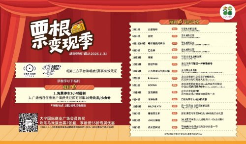 崭新的剧本已正式开机,你的新年flag都立好了吗?大宁国际带着满满诚意前来报到:不仅有宠粉专属福利和花样趣味活动,更备下了多重开年好礼,陪你温暖启程。让我们一同布局属于2026年的第一波惊喜与精彩,携手开启这段全新的旅程吧!