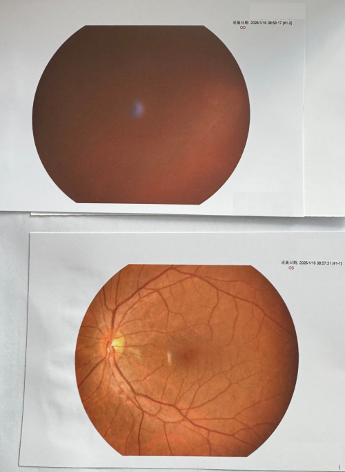 因斜视原因,已经困扰他的日常。33cm角膜映光显示右眼外斜约-40°,外伤性白内障导致晶体混浊,晶体核出现了局部碎裂;瞳孔被伤成不规则的“月牙形”,1.5mm×4.5mm的尺寸搭配完全消失的对光反应,迫使他只能习惯性向右转脸,才能勉强视物。与人对视时的刻意闪躲、拍照时下意识的侧脸、日常行走的诸多不便,让彭先生开启了这次跨省的求医之路。