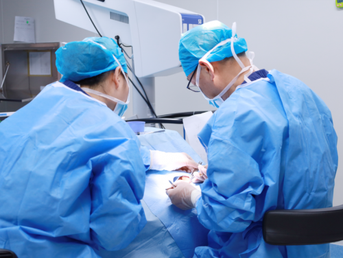 手术当日,刘春民院长带领团队开展手术。针对彭先生瞳孔变形、晶体碎裂的复杂眼部条件,刘院长凭借三十八年临床积淀的精湛技艺,手持器械对四条眼外肌进行精准调整。助手团队默契配合,借助先进手术显微镜清晰呈现眼部细微结构,为操作精度提供保障。手术中,刘院长精准避开受损组织,合理调控眼肌力量与位置,逐步矫正偏斜眼位,顺利完成缝线操作,手术过程平稳有序。