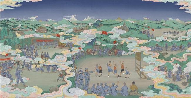 “红色历史、抗震救灾等主题,是中华民族共同记忆与精神的凝练。”郎卡杰唐卡州级非遗代表性传承人、四川省工艺美术大师、《镌刻在唐卡中的红色记忆》项目主创画师泽仁洛布说。