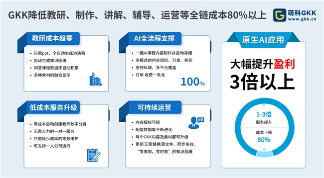 从商业和管理成本的角度来看,这种模式的转变更是具有革命性的。过去,机构或学校想要达到类似的互动效果,需要雇佣大量的助教和辅导员,人力成本极高。而现在,GKK将单节交互课的生成和维护成本压低到了十元量级。这种低门槛、高效率的直接服务方式,让“一人办学校”或者“一个年级组服务全校”成为了现实。