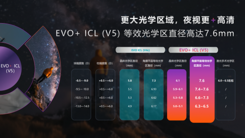 EVO+ICL(V5)具有更大的光学区,可减少夜间视觉干扰,为在暗光环境下活动的患者带来潜在获益。