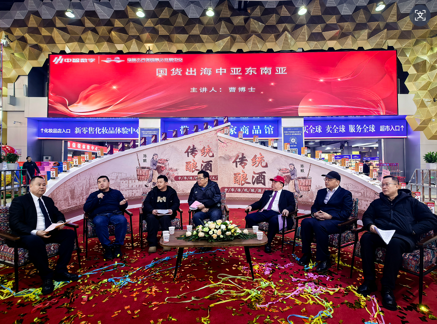 活动现场特邀亚洲电视东南亚合伙人曹郡程博士、自治区人民政府顾问张文中教授、新疆头部经济博主代宪礼、贵州坤台赤酱酒业有限公司总经理曹俊松、新疆万博明盛酒业有限公司董事长马明强、贵州青酒酒厂新疆区负责人赵胜军等专家就《酱酒扬帆 货通中亚——国货出海新机遇与跨境新挑战》主题进行了深度分享,与会专家围绕品牌国际化策略、跨境物流解决方案、文化差异与市场适应、数字化营销等议题展开激烈而富有建设性的讨论,专家一致认为,品质是根基,合规是前提,本土化策略与平台赋能是酱酒成功出海的关键,为在场企业提供了宝贵的市场洞察与实操指导。