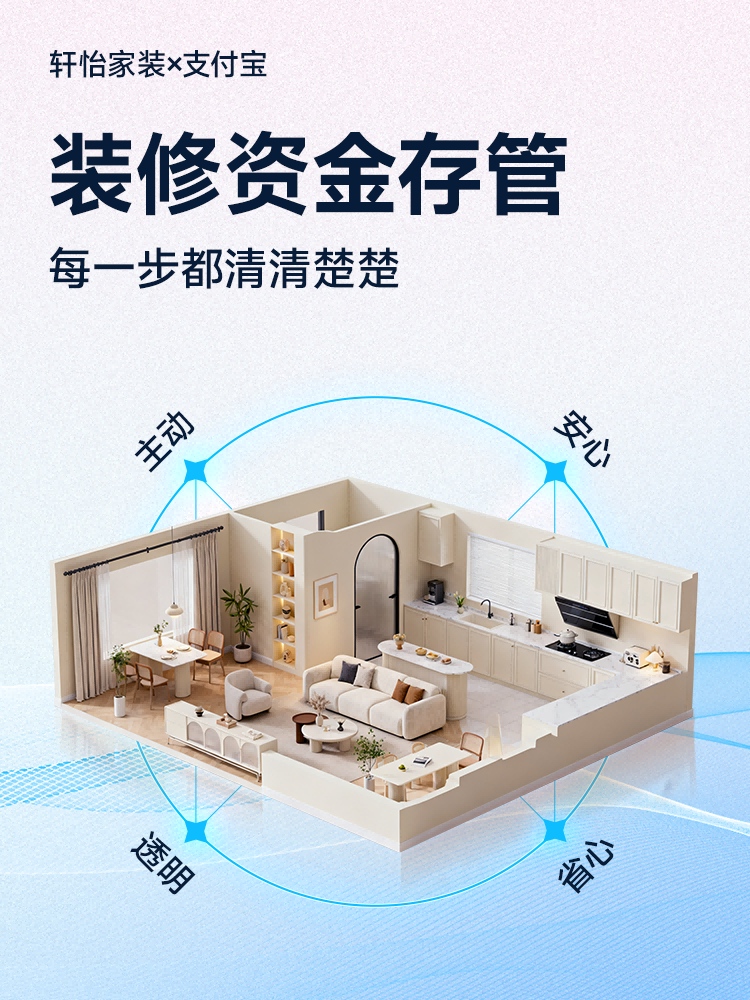 传统装修模式下,资金支付往往意味着消费者监督杠杆的失衡。轩怡家装与支付宝共创的「资金存管」模式,旨在从根源上建立新规则。业主款项由支付宝第三方全程托管,专款专用,仅当每个施工节点验收通过后,方由业主本人通过支付宝确认付款。这实现了您满意,才付款的消费逻辑根本性扭转,让品质成为驱动工程进度的唯一标准。