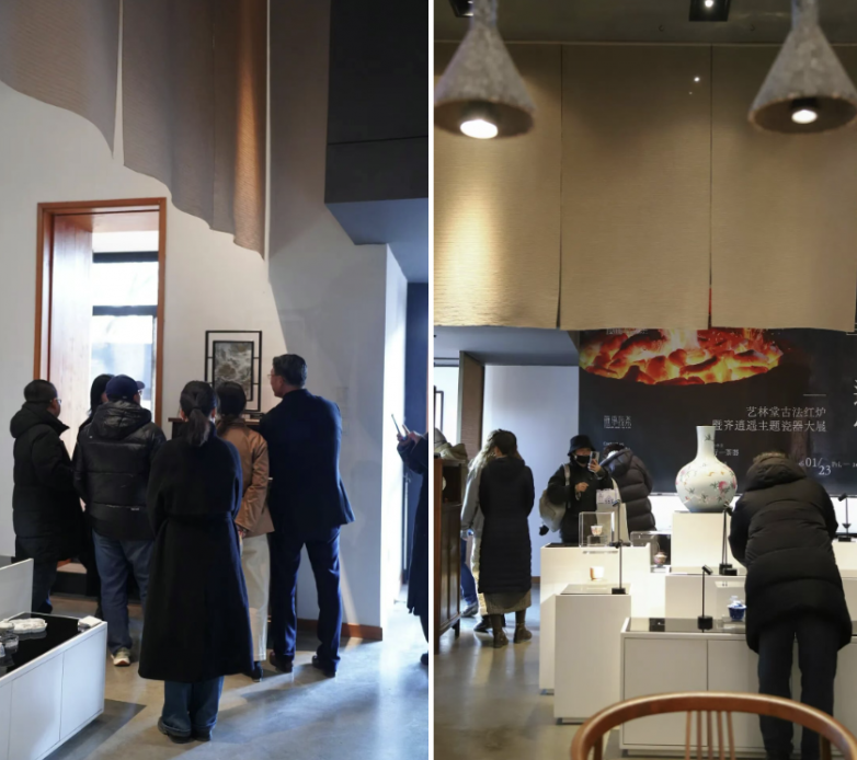 展柜前,人们或俯身细赏釉色流转,或围坐茶席品茗论瓷,在现场搭建的红炉前,相机快门声与轻声赞叹交织成独特的观展乐章。这场由行一茶器携艺林堂共同打造的瓷器盛会,早已超越普通展览的范畴,成为一次连接玩家茶友、品牌方与景德镇瓷艺的重要纽带。在行一茶器的精心搭建下,展览所释放的多元影响力,正渗透到行业的每一个角落。