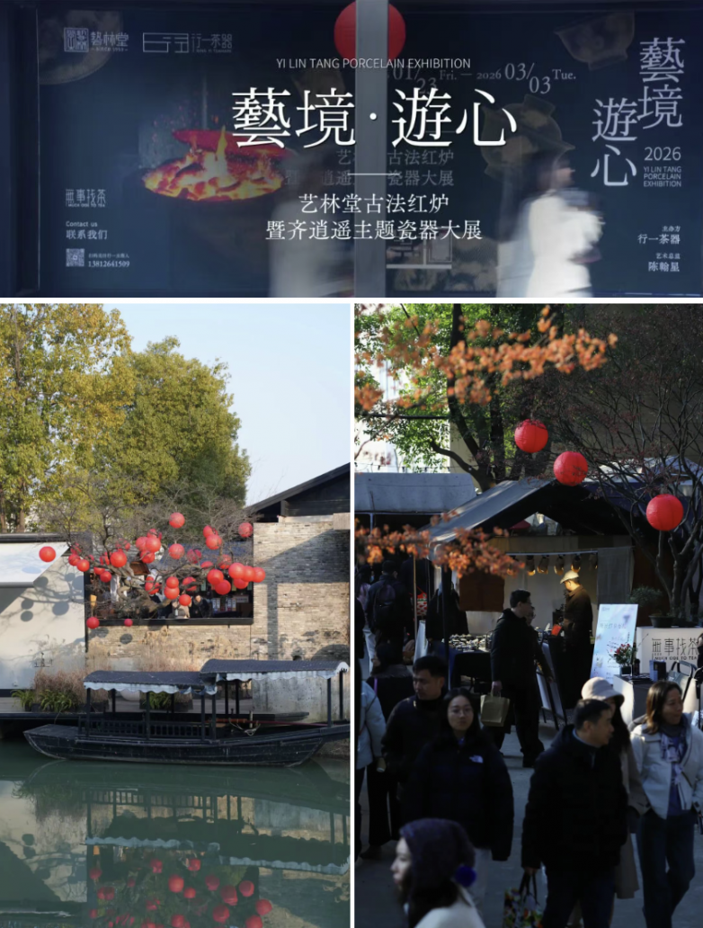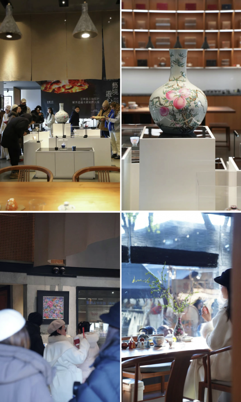 今天是 “艺境・游心”2026 春节前收官瓷器展启幕的第二天,恰逢周末本色美术馆的市集,人流如织,展厅内的热度高涨,苏州本色美术馆早晨刚开门,便有怀揣期待的访客来到行一茶器无事找茶空间观展。