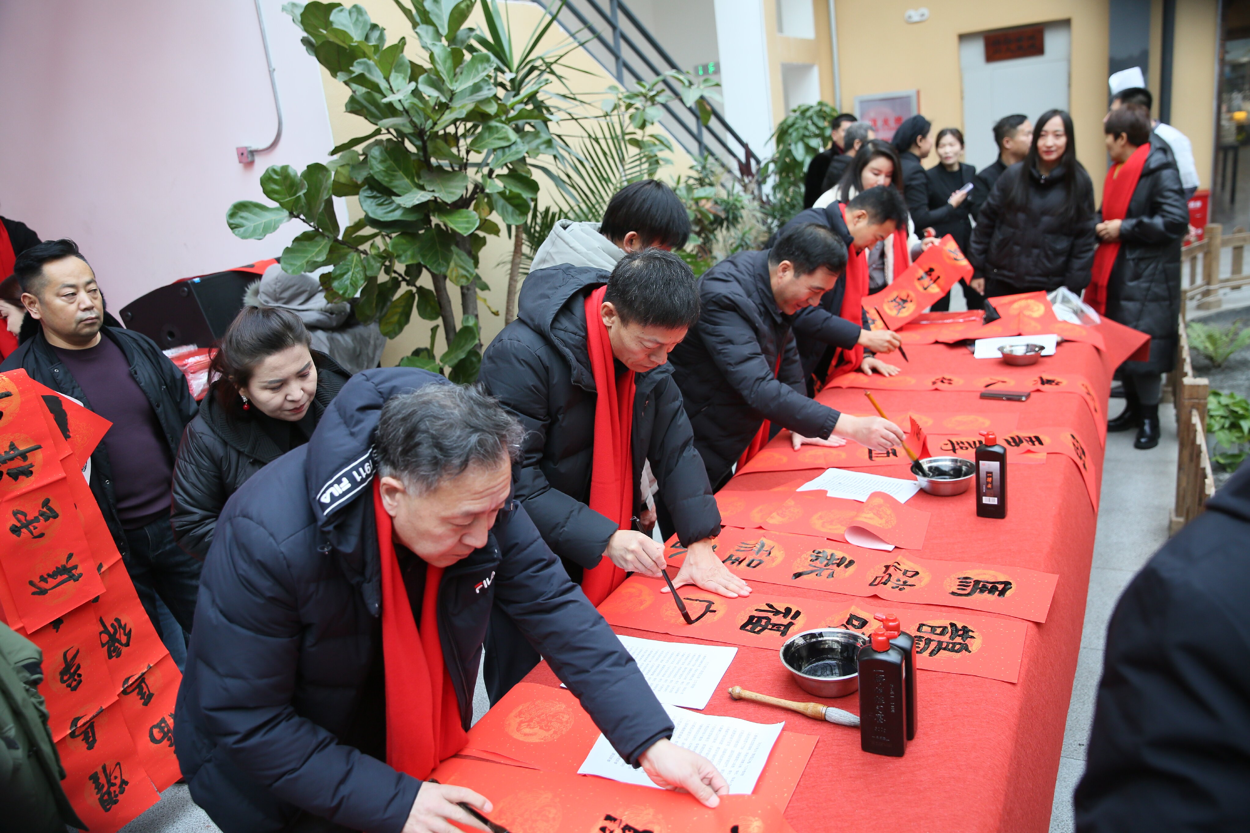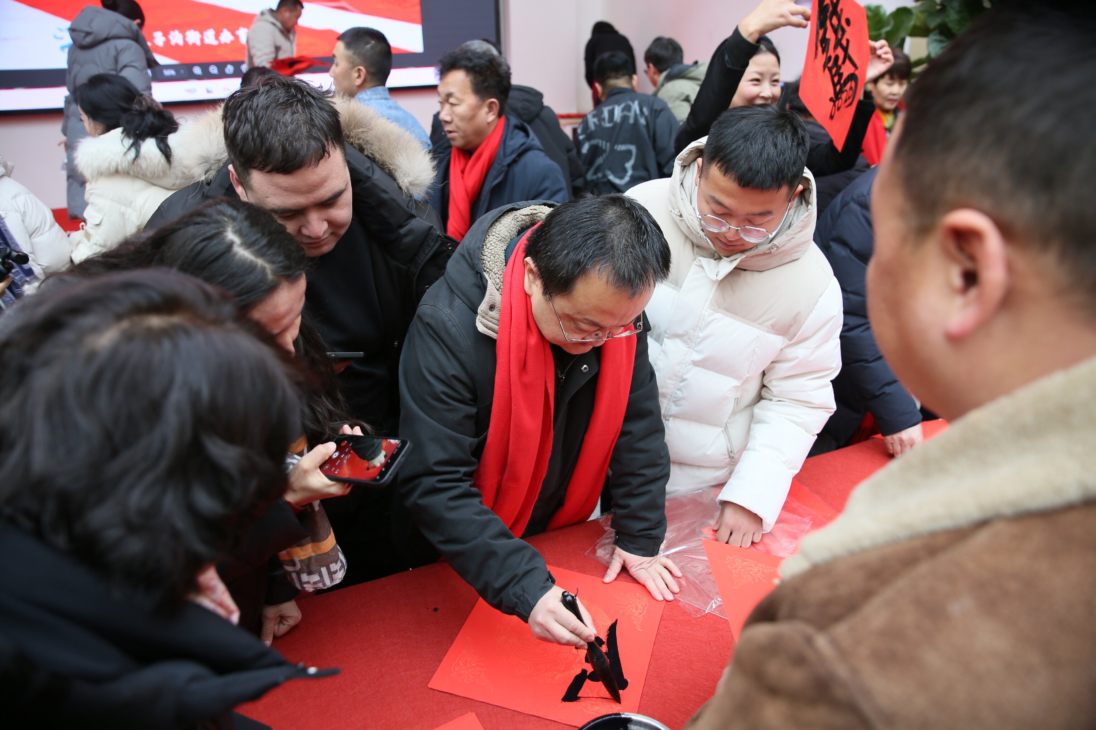 活动现场节日氛围浓厚。中国书法家协会行风建设道德委员会委员、新疆书法家协会副主席刘建新,中国书法家协会会员、新疆书法家协会秘书长杨小刚,新疆书协副秘书长曲渊,新疆书法家协会理事、高新区(新市区)书法家协会副主席李军武,新疆书法家协会会员吴发林,喀什地区书法家协会副主席石多俊,新疆书法家协会会员窦高平,新疆昆仑书画院院长田野等疆内知名书法家齐聚一堂,饱蘸浓情,挥毫泼墨。一幅幅寓意吉祥的春联、一个个饱满的“福”字跃然纸上,将浓浓的年味与真挚的祝福送到群众手中。