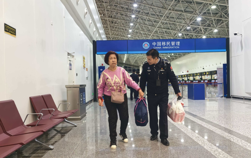 经老人介绍,其为新加坡籍,今年78岁了,腿脚不便,本次旅程无家人陪同。了解情况后,台外民警便引导老人至绿色通道,起身、接证、询问、录入,台内检查员一连贯的专业动作,为老人办理了边检手续。随后,该站还主动与安检沟通协调。全程护送老人直至顺利登机。临别时,老人对民警连声道谢,多次提到中国移民管理警察服务暖心又周到,为此次中国行画上了圆满句号。